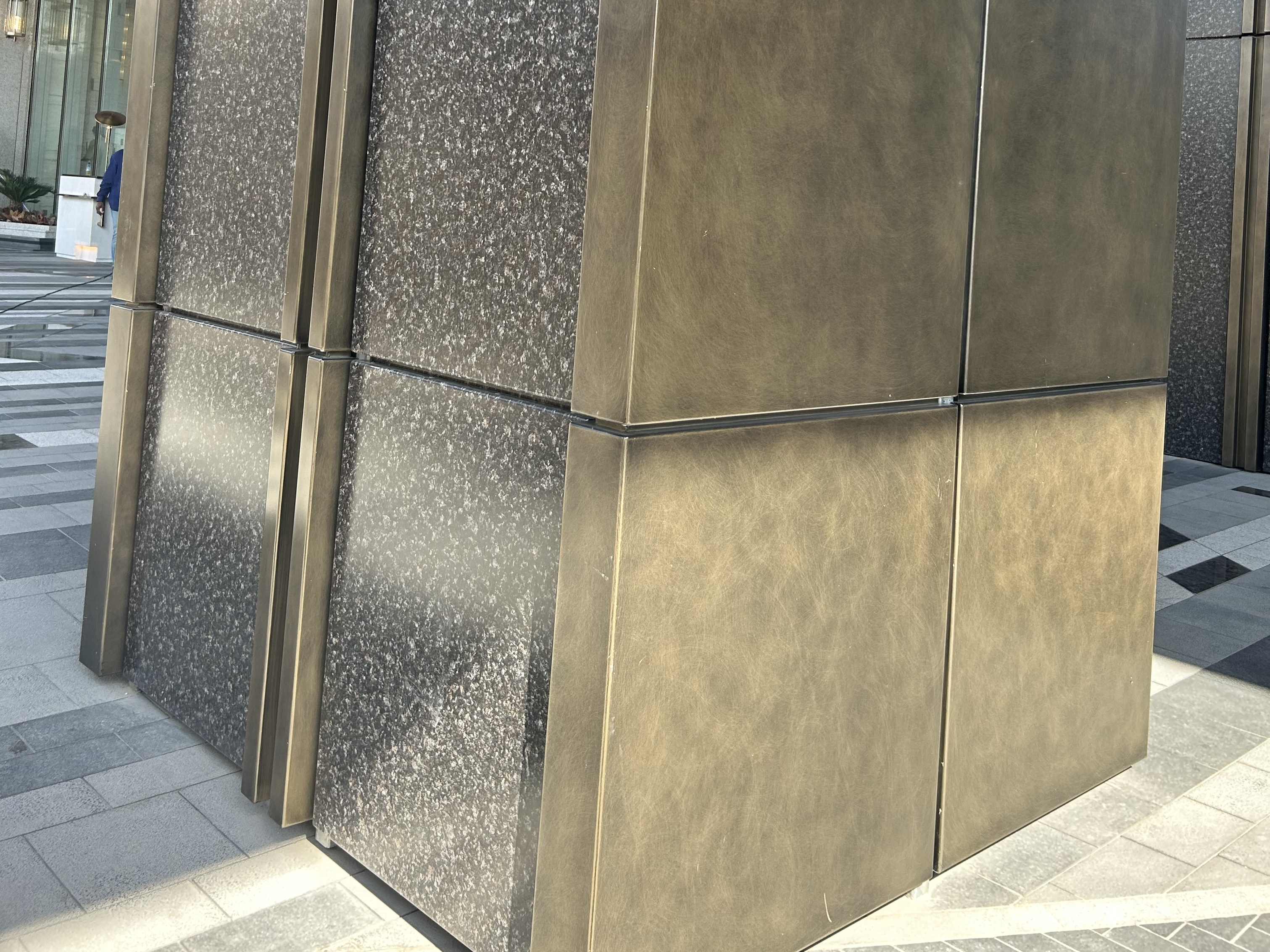 We supple the solid aluminum panel for them, the cladding color is copper finish, and marble color.